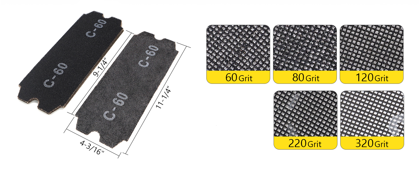 - Her Türlü İşlem İçin Çeşitli Kum Tanecik Boyutları : 40, 80, 120, 180, 220, 320 ve 400 olmak üzere çeşitli kum tanecik boyutlarında 5 adet elek zımpara içerir; kaba zımparalama, düzeltme ve son işlem için idealdir.